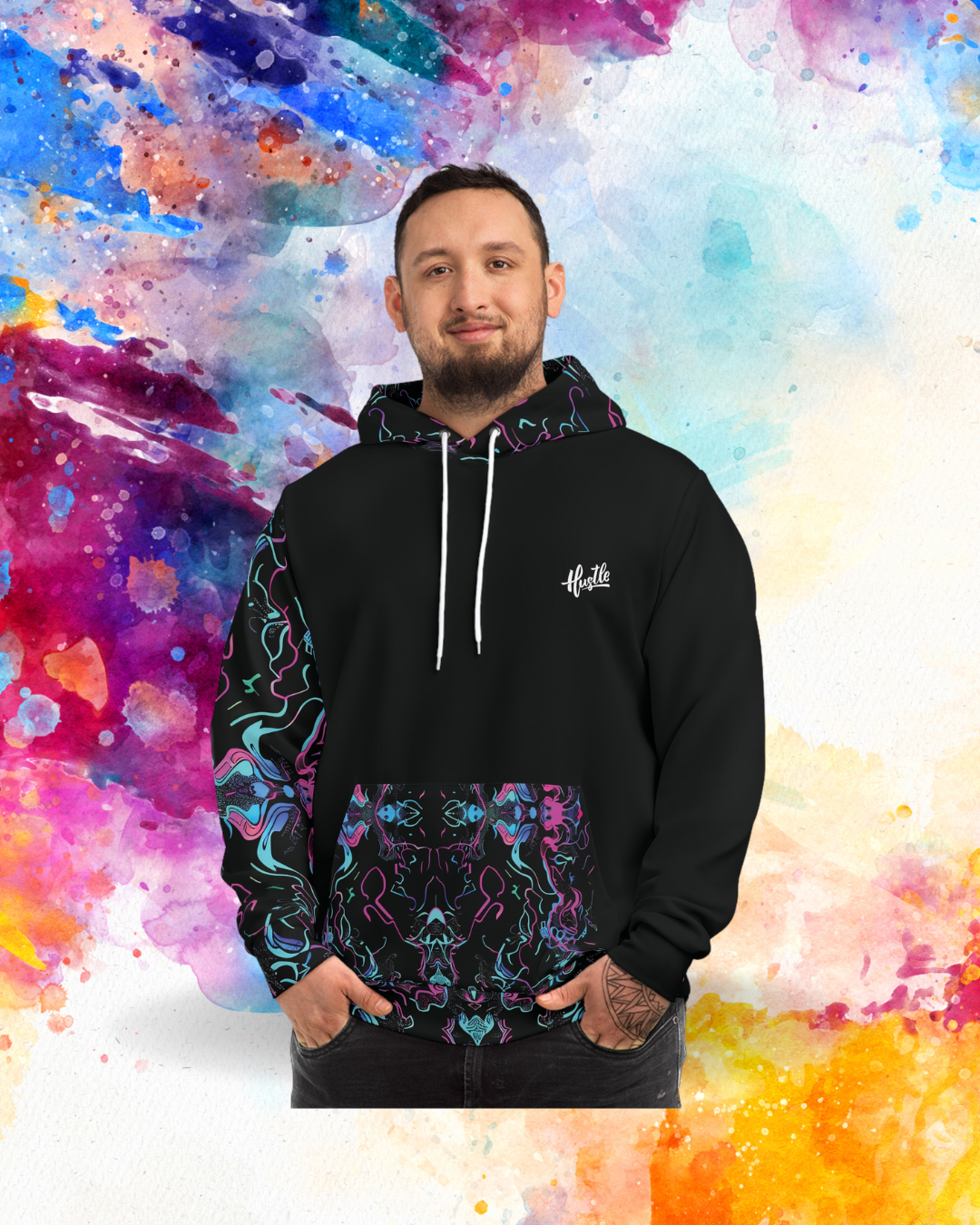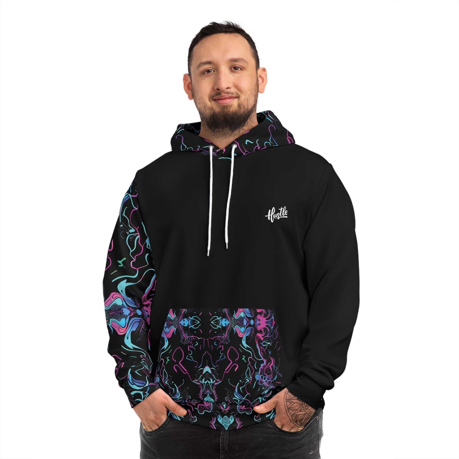 Hoodies are cool by default, but a personalized hoodie that can sport your own all-over-print design is leagues ahead. Our all-over-print hoodies are unisex, made with 75% polyester, 20% cotton, and 5% spandex - resulting in an extra cozy feeling that lasts all day long.